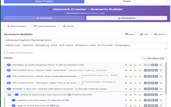 นอกเหนือจากการติดตามแล้ว Network Request Crawler ยังสนับสนุนการสร้างสถานการณ์ตามหลักการขับเคลื่อนด้วยเหตุการณ์ ฟีเจอร์นี้ช่วยให้ผู้ใช้สามารถสร้างการทดสอบอัตโนมัติ ซึ่งเพิ่มประสิทธิภาพของกระบวนการทดสอบ โดยรวมแล้ว มันทำหน้าที่เป็นแหล่งข้อมูลที่มีค่าสำหรับผู้ที่เกี่ยวข้องกับการพัฒนาและการทดสอบเว็บไซต์ โดยให้เครื่องมือที่จำเป็นเพื่อให้มั่นใจในการจัดการคำขอเครือข่ายอย่างมีประสิทธิภาพ